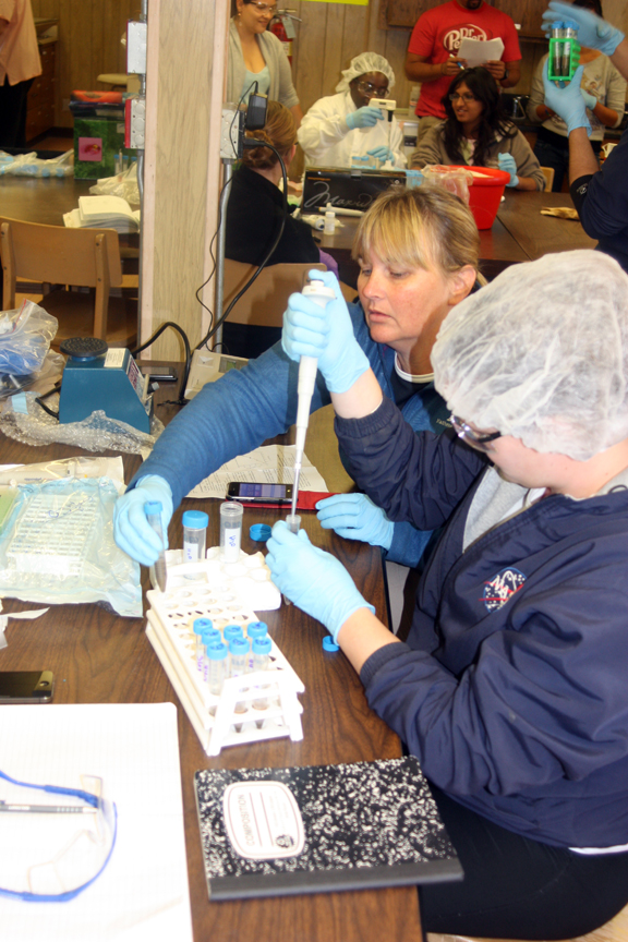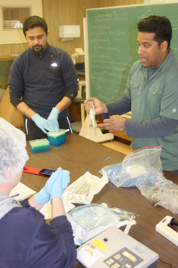 The students and scientists had set up a series of protocols for the tests and a plan of attack for how to identify each sample. First, a group were taking samples of the crusts at each location and extracting the DNA from them. Each time, the scoop was sterilized with a Bunsen burner. The solution was then centrifuged to settle out the non-dissolved portions. Another group was at work using polymerase chain reaction techniques to increase the DNA yield so that the final sequencing could be done in a specialized lab. We’ll have the lab look at the specific species in the crusts, including the cyanobacteria, fungi, lichens, mosses, and archaea present in these symbiotic communities.