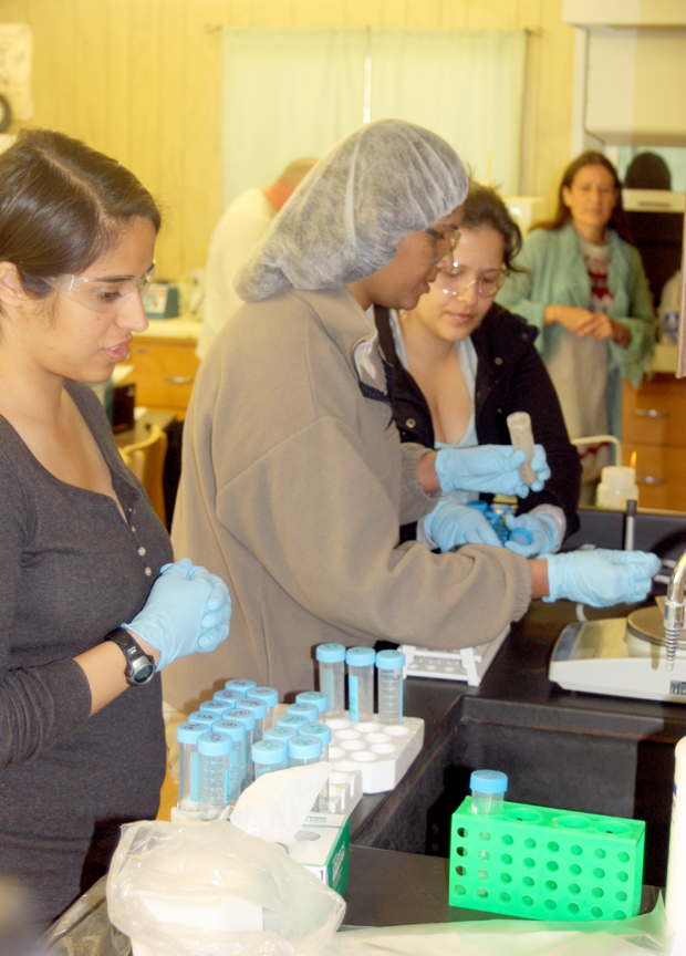 We got quite far with the tests today – it helps to have a group of people who are experienced and work well together. Although they come from all over the California State University system, the students are all in their second year in the program and know what to do and what each other’s strengths and weaknesses are. We all helped out where we had experitise. It was fun to see what college students can accomplish. We have one major remaining test for tomorrow: chlorophyll extraction and spectral analysis.