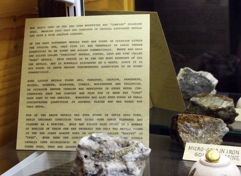 Gold ore from the San Juan Mountains on display in the Silverton museum.