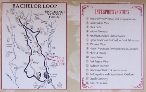 Map of the Bachelor Loop scenic trail north of Creede.