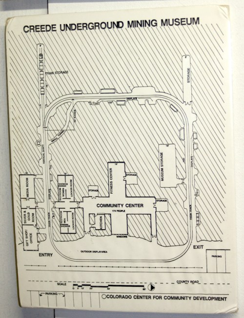 Creede Underground Mining Museum map. The mine tour and community center were blasted out of the side of Willow Creek Canyon.