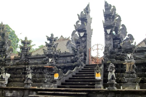 Larger temples, family compounds, and even many businesses are built so that one must climb a stairway that passed through a gate shaped like a mountain split in two. This represents the journey through the Sacred Mountain at death.