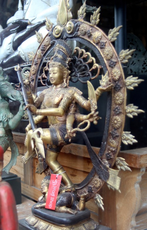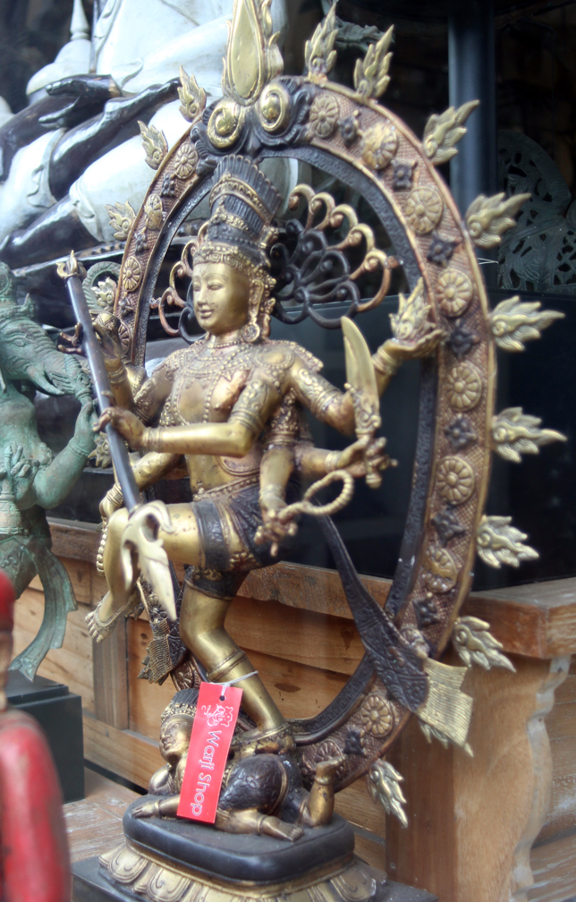 A brass figurine of Shiva as the Lord of the Dance. Although the God of destruction, Shiva is revered as an essential part of the natural order of birth, life, death, and rebirth.