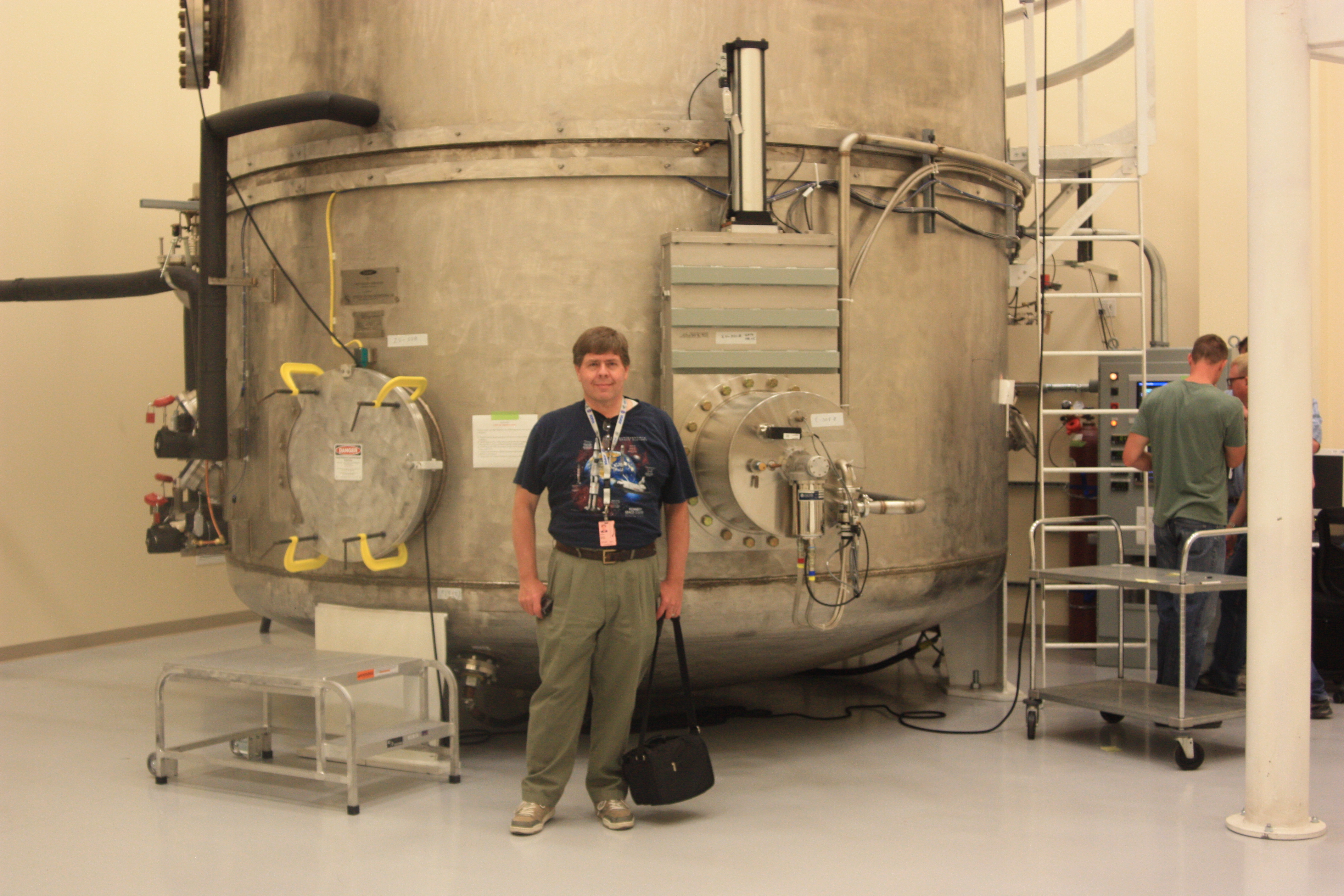 David Black (yours truly) in front of a large vacuum/irradiation chamber at the Environmental Test Lab (aka Shake and Bake) at the Jet Propulsion Laboratory, 2004.