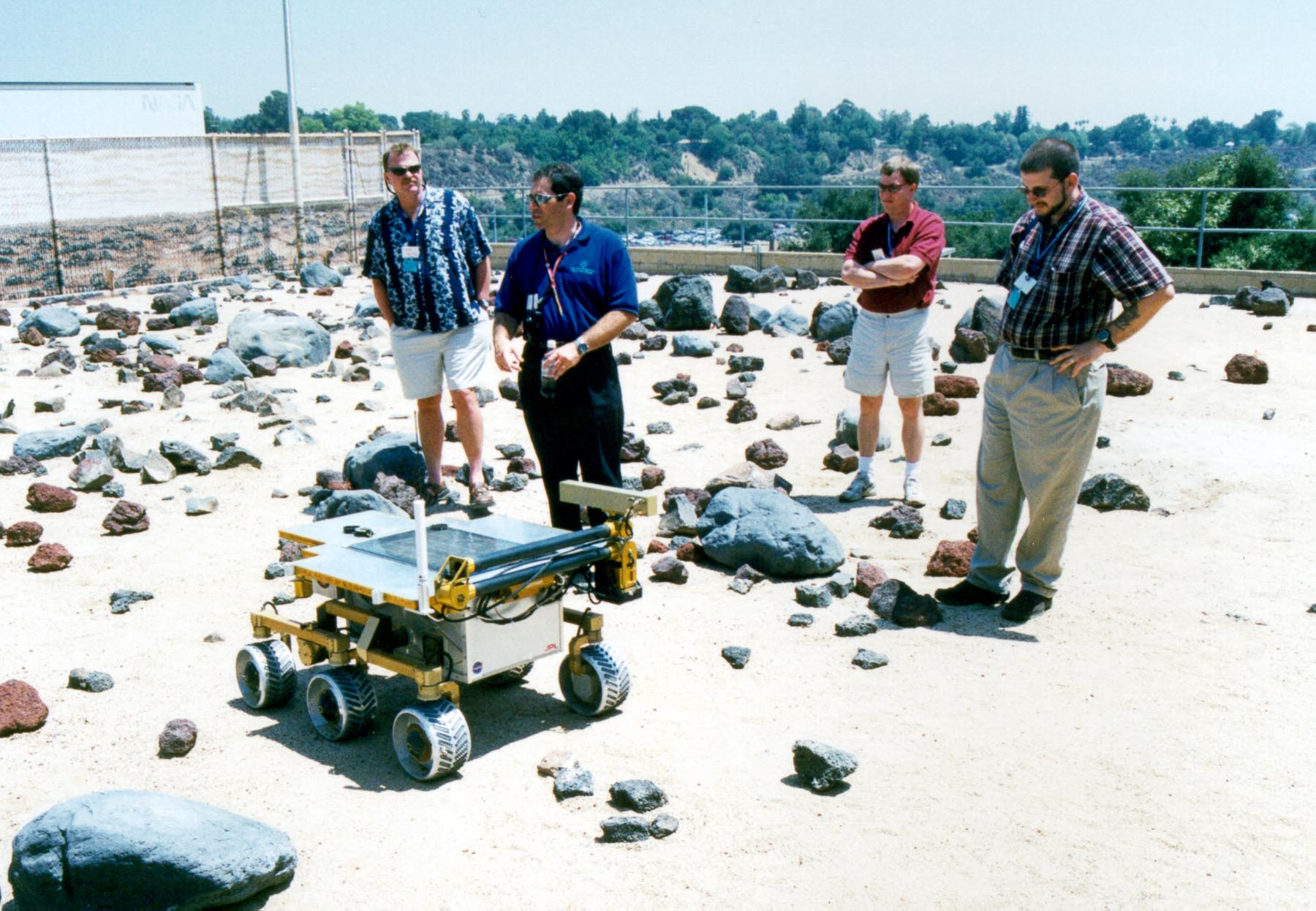 David Seidel explaining how rovers are tested in the Mars Yard at JPL, summer 2002.