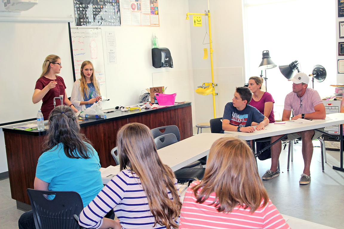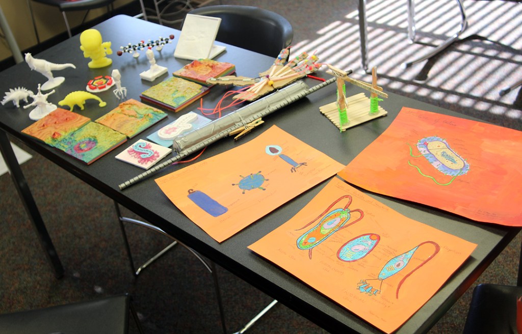 As a final project, students can prepare mini-lessons, presentations, activities, and handouts for a STEAM Showcase night at the end of the school year. Here, students are demonstrating how to make soap for their siblings and parents.
