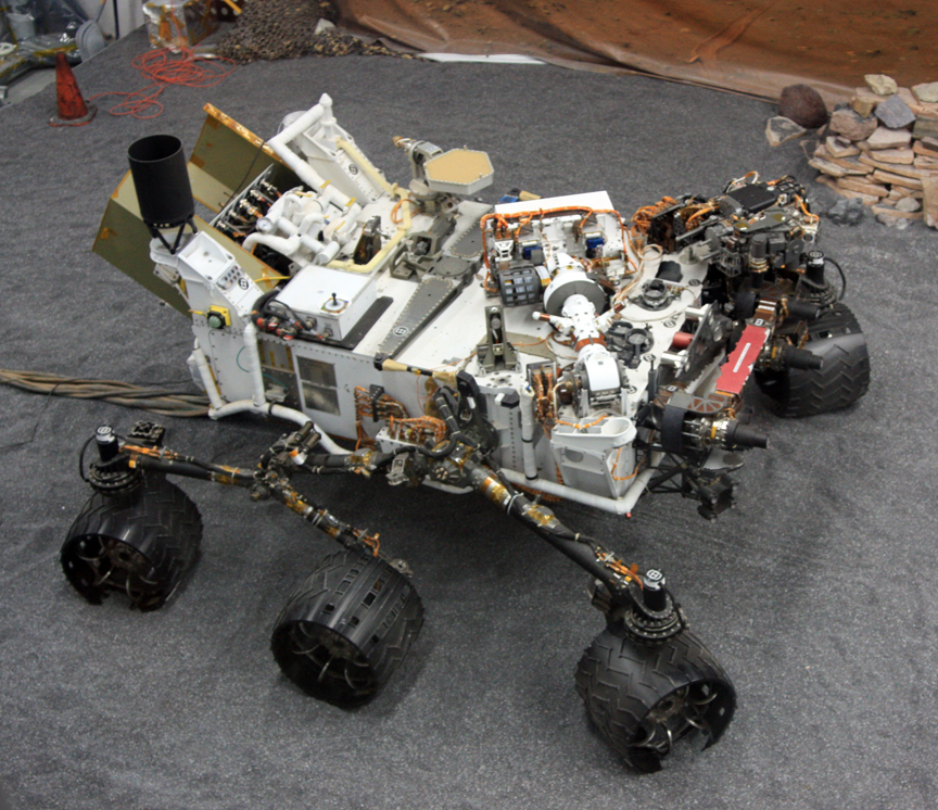 An engineering test model of the Curiosity Rover in the In-Situ Instruments Lab (ISIL) at JPL in 2012. The actual rover was scheduled to land on Mars two days after we took this tour.