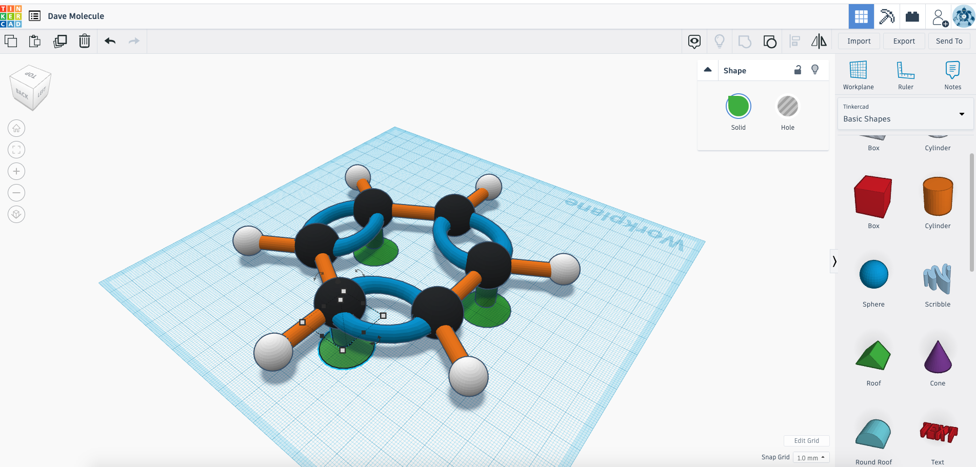 Students in a chemistry class can pick a favorite molecule (such as Tyrian purple) and create a 3D model in Tinkercad, then capture different angles to use in an illustration or poster inside Photopea or Canva. Or they could build a model of a space probe or a virus using Tinkercad or SculptGL.