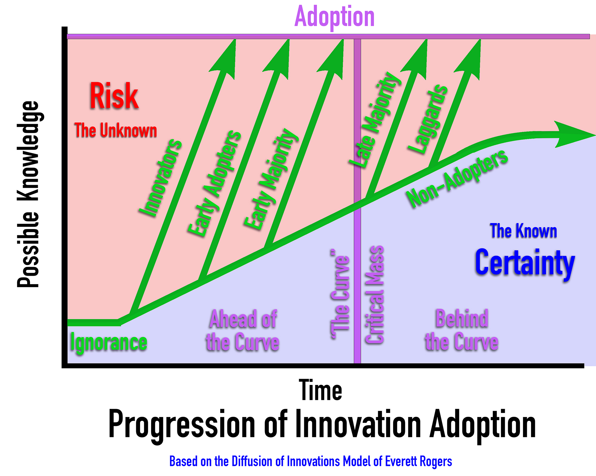 I have also developed some materials for teaching quality, such as a diagram illustrating what I call the quality curve: Effort and quality are not linear in relationship. They are exponential. To double the level of quality in a project does not take twice the effort but four times as much effort or more; it takes 80% of the final effort to raise the quality of a project from good to excellent or professional. I deal with students who have high anxiety and many are perfectionists; they will not turn in assignments until they are perfect, which they can never be, because the effort vs. quality curve is assymptotic to perfection. I don’t know how this could be studied in the classroom, but it would be very informative to see how well this holds in real life. The key then is how to get students to recognize and put in the effort to reach excellence or professionalism without holding out for perfection. This takes a degree of self-efficacy that many of my students are lacking. Assessing quality and innovation is an entire large topic of its own.