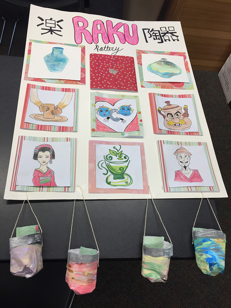 An interactive poster on Raku pottery for a unit on the history of chemistry. Even a standard project like a poster can be enhanced if you allow students to use their creativity. This poster has windows you can open to see questions, with answers in the pots below.