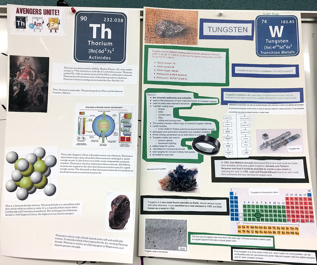 Student posters on thorium and tungsten. I especially like the Avengers Unite cartoon with Thor-ium, Captain Americium, and Iron Man.