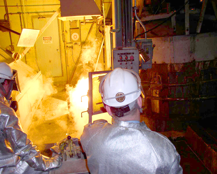 Meanwhile, the gold filtered out by the jigs was sent through a concentration process. It would be passed over a shaking Deister table where the gold would be caught by riffles and formed a streak to be collected. It was mixed or amalgamated with mercury to remove the gold from the remaining waste ore. The amalgam was then formed into rounded boats or cakes and heated in a retort at 1200 ° F for 12 hours to evaporate the mercury, which was bubbled through water to condense it for reuse. The remaining gold was now called “sponge” and was about 80% pure. It would be sent off to a foundery for final purification. Four to five sponges would be produced each week. Each sponge weighed about 22 pounds. During the last year of the mill’s operation (1991), a new process was developed that eliminated the need for mercury (which was highly toxic).