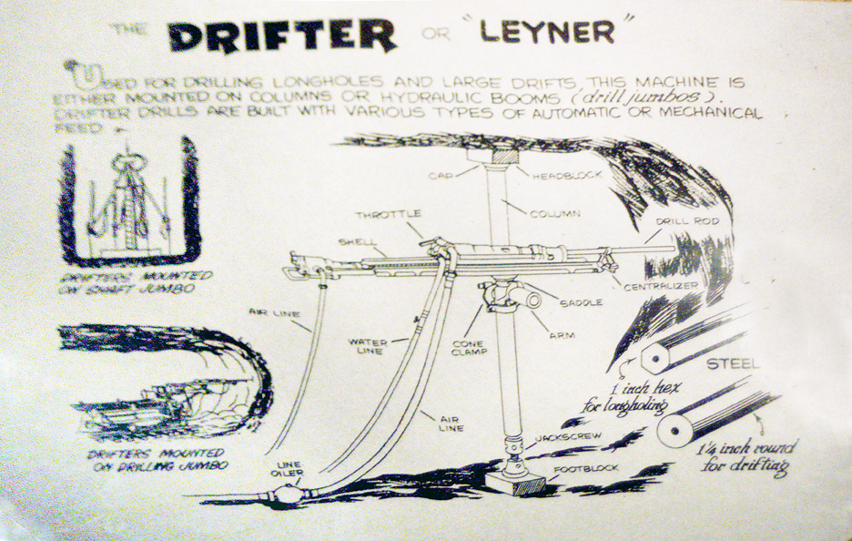 The powder, now the consistency of sand, was passed through a ball mill, with 2-3 inch diameter iron balls rolling around to crush the ore even finer. These balls were added frequently during the day through pipes from a ball bin. Now the ore was now the consistency of talc and fine enough to start to separate.