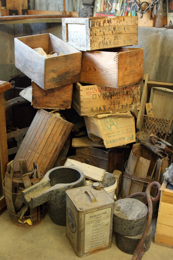 Built of pre-framed Oregon fir and completed in six months for $373,000, the Mayflower Mill began processing ore in Feb., 1930 and continued in operation for 49 of the next 61 years, finally closing down in 1991. It is in fact still capable of operation, and all the original equipment is intact. The historical society allows self-guided tours that start in the machine shop, then move to the tram station, ore storage bins, ball mills, flotation cells, recovery system, assay office, etc.