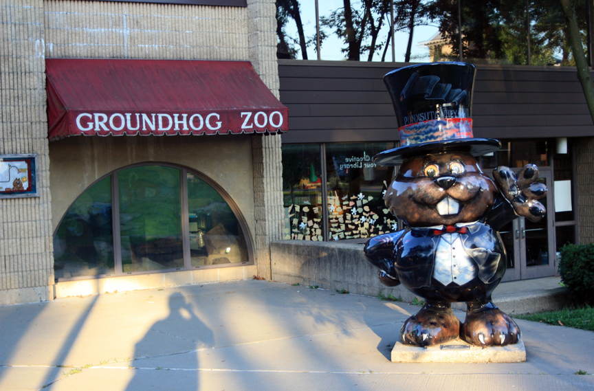 After Gettysburg, I headed west on US 30 through Chambersburg over the Tuscarora Pass (beautiful countryside and quite a view from the pass) and picked up I-76 again for about 15 miles, then exited onto I-99 north toward Altoona. I then exited onto PA 22 to Indiana, PA, then north on PA 219 to Punxsutawney. Yes, that’s right, the official home of Punxsutawney Phil, the Seer of Seers and Prognosticator of Prognosticators. The Official Groundhog of Groundhog’s Day . . . .