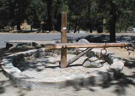 A restored arrastra in Groveland, California. Heavy rocks were dragged around in a circle to crush ore.