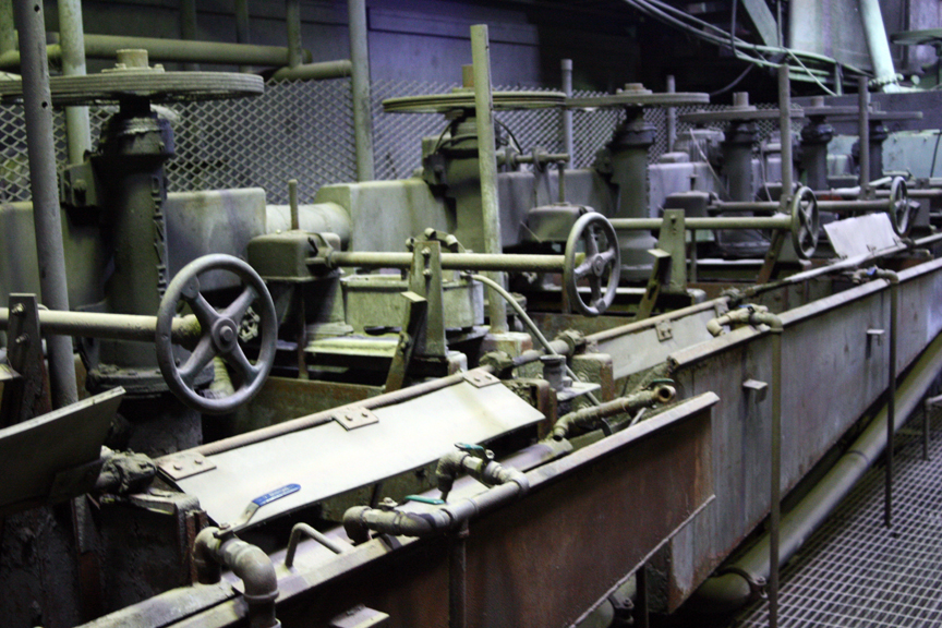 Gold jigs at the Mayflower Mill. Using air pressure, the lighter ore powder was suctioned away from the heavier gold particles.