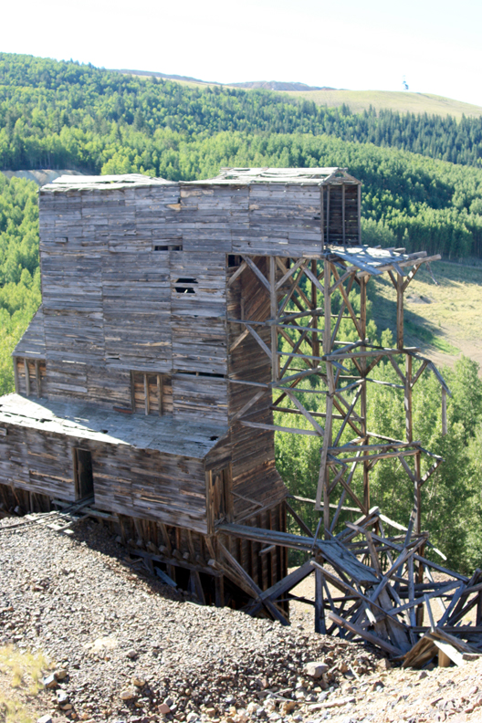 Once the mine is exhausted of ore, or the shaft extends down below where it can be economically drained of groundwater, or the price of the final metal drops so the mine can no longer turn a profit, it is closed down (sometimes temporarily). Today, mines have to post bonds that force them to reclaim the mine and make it safe once mining has concluded. But in the old west, the mines simply shut down and left everything where it was. Tailings piles are the most obvious evidence of mining, and the rocks are often stained a yellow, orange, or reddish brown color from iron sulfides and sulfates. Rotting timbers poke from the ground, and rusted metal scraps adorn the slopes. Drainage water still seeps from adits, often contaminated with metals or other effluents. And the shafts and portals remain, too often a temptation for the unwise to explore. A few people die each year from cave ins while exploring old mines, or get killed by handling old dynamite left in mines. In some states, such as Utah, a concerted effort is underway to close all of these abandoned mines in the name of public safety but at the expense of history. Other states, such as Colorado, seem to strike a better balance between history and safety.